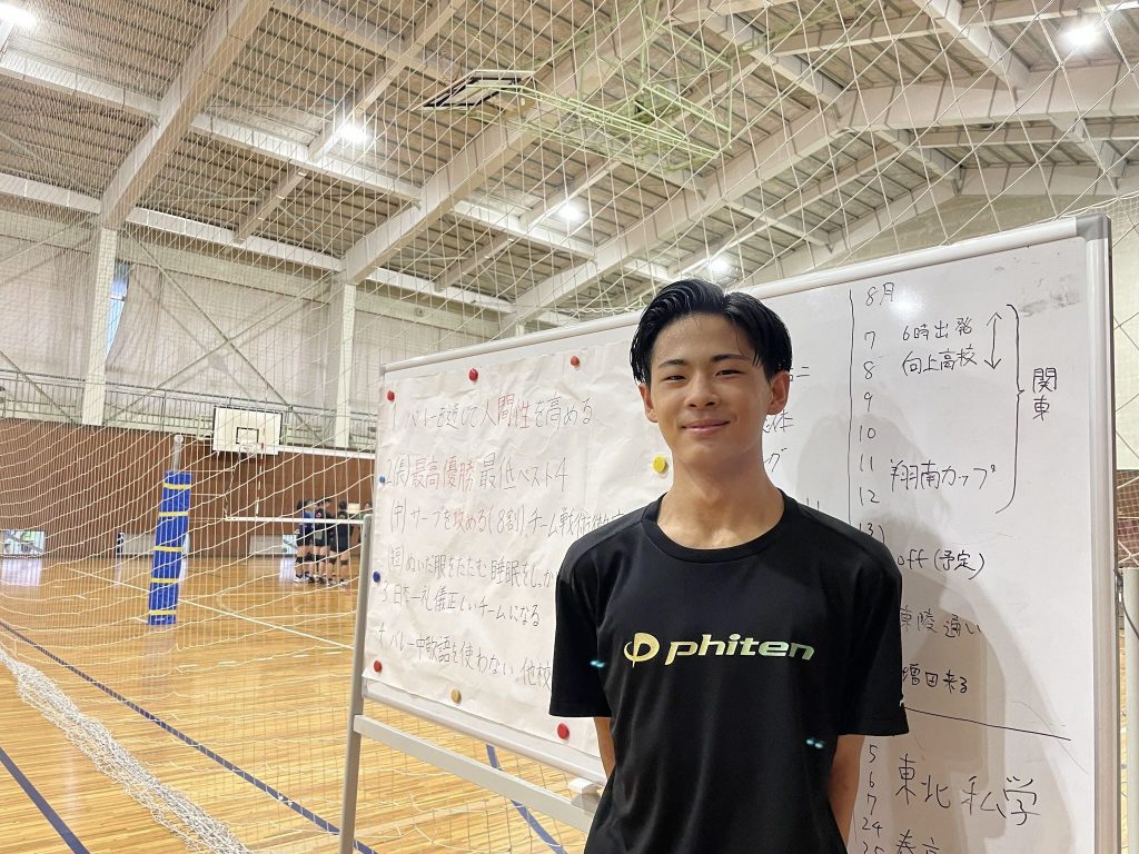 「チームの雰囲気は、一言で言うと『すごく楽しくて、面白い!』です。練習中は真剣に、でもいつも笑顔が溢れていて、とても良い雰囲気だと感じています。先輩たちはみんな優しくて、どんな時も丁寧に教えてくれるので、僕たち1年生も、毎日バレーボールを楽しめています。」