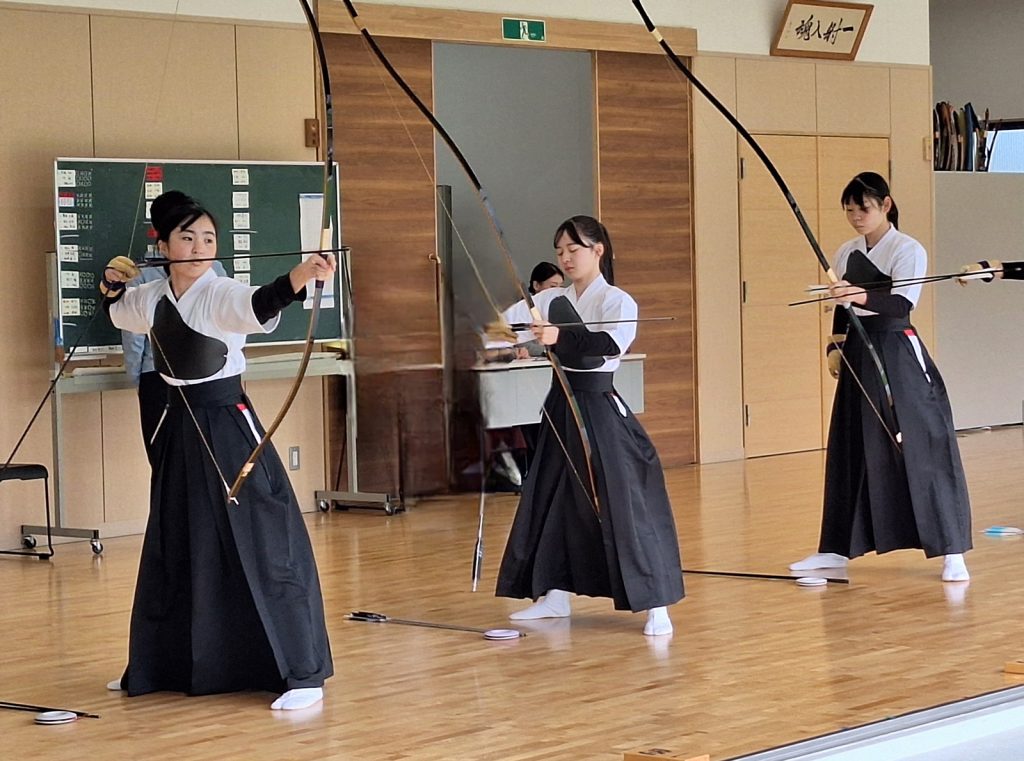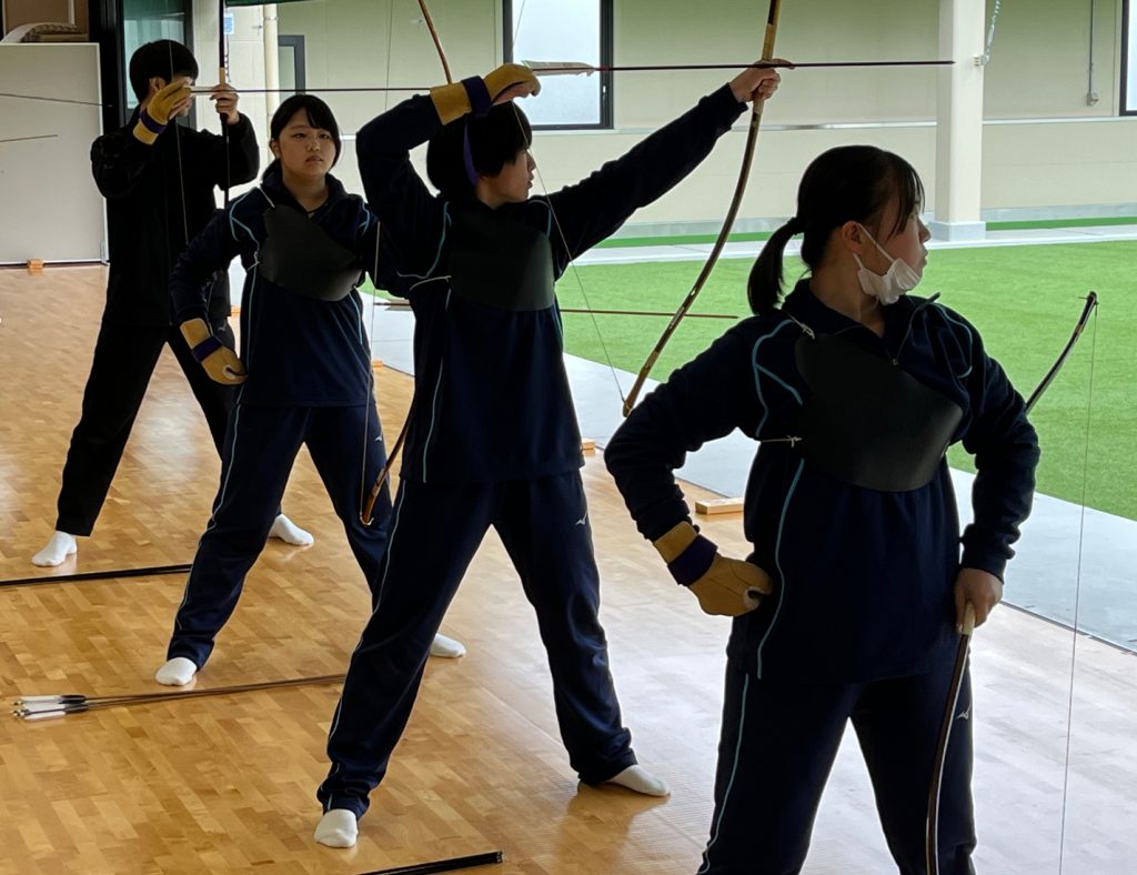 弓道は、的を射る技術だけでなく、礼儀や集中力、精神力を養う武道であり、部員たちは日々の稽古を通じて心身の成長を目指し、取り組んでいます。