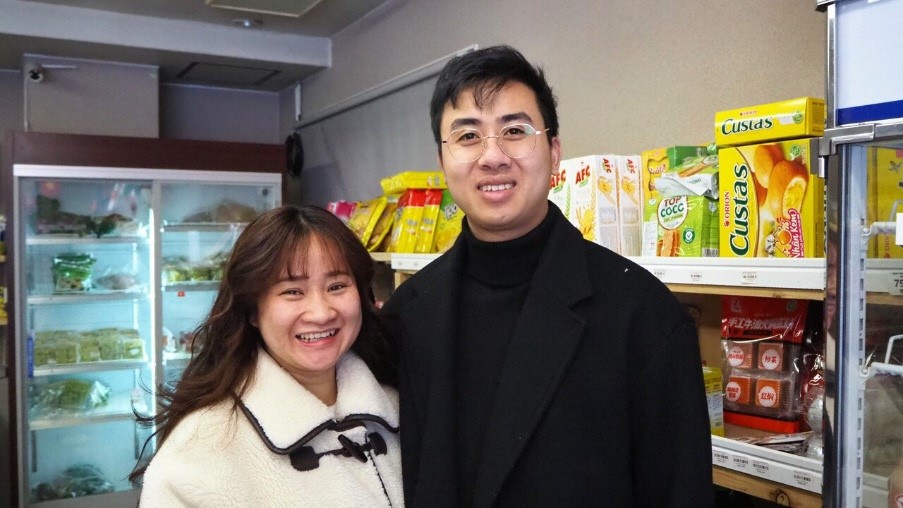 ▲奥様と一緒に。2人はベトナムで出会って、昨年結婚をされたそう。