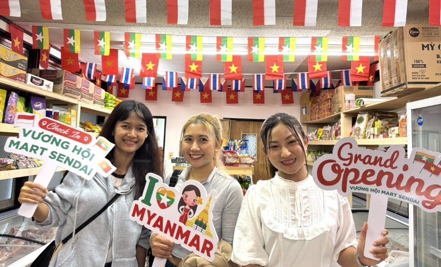 ▲仙台店のオープンに駆けつけたミャンマー人の方たち。