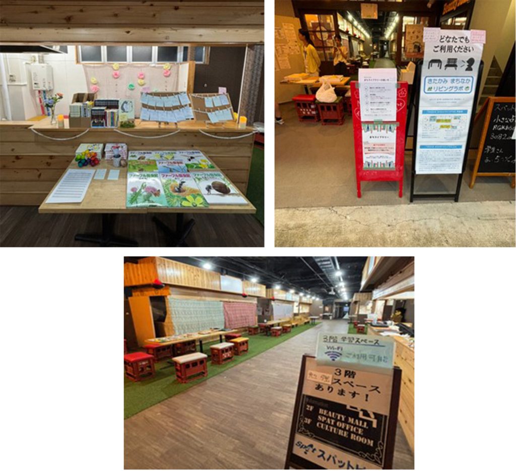 その後、岩手大学の学生が主体的に企画し、諏訪町のスパットビルに設置された「まちライブラリー」に移動しました。これは商店街の中に読書や、読書後に感想が書けるスペースを設置し、感想を共有し合うことができるという、企画でした。これにより、本を通して人とつながることができるので良い企画だと思いました。
